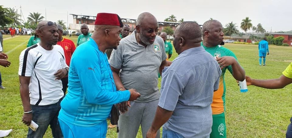 Le capitaine des journalistes, Eugène Koici, a reçu le trophée des mains du Ministre des Sports, Danho Paulin, en présence du Président de la FIF, M. Augustin Sidy Diallo.