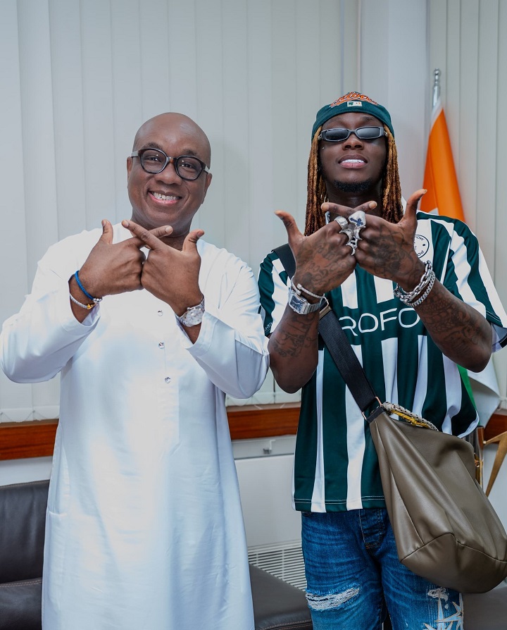 L'artiste Himra, figure montante de la scène musicale ivoirienne, venu présenter ses civilités au Président Yacine Idriss Diallo dans le cadre d’un projet de collaboration musicale dédié au soutien de l’équipe nationale, les Éléphants, ce vendredi 12 décembre 2025.