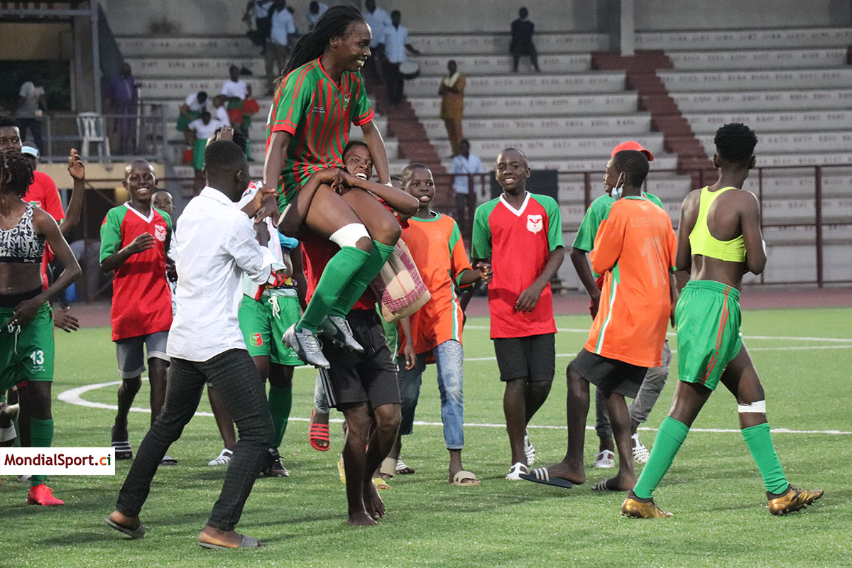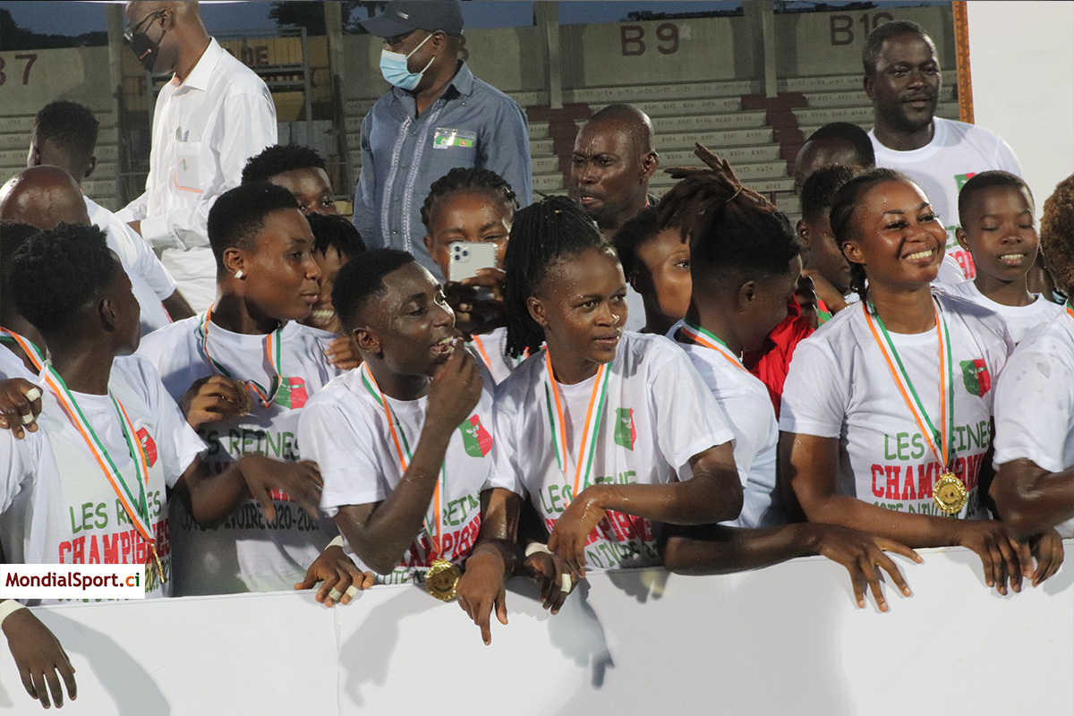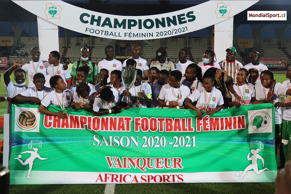 Contrairement aux hommes, les dames de l’Africa Sports ont su hisser très haut le drapeau vert et rouge du club. Battues en finale lors du précédent exercice par les Onze Sœurs de Gagnoa, les Aiglonnes ont réussi à rebondir cette saison en remportant le titre de Champion de Côte d’Ivoire au terme du Carré d’AS. Déjà leader avec 6 points, un nul suffisait à l’Africa ce jour face à la Jeunesse FC de Marcory pour s’offrir le titre dans l’enceinte du Robert Champroux. Les Oyées se sont imposées 4 buts à 0.