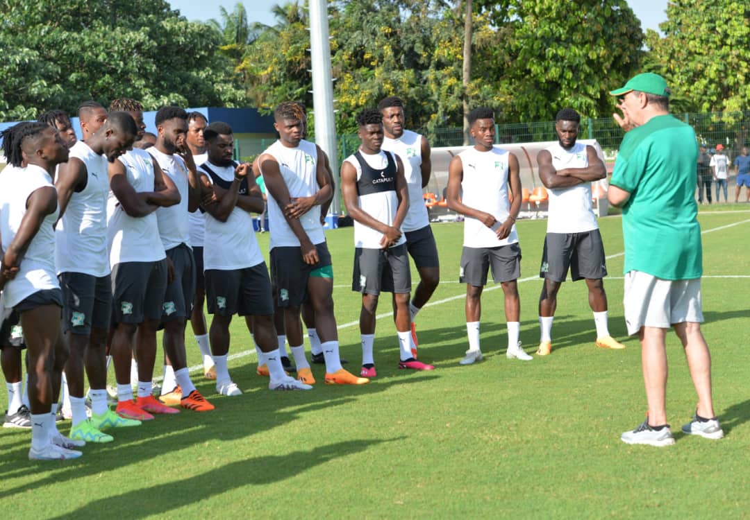 Le Sélectionneur Jean-Louis Gasset et ses poulains ont effectué leur deuxième séance d'entrainement ce mardi 13 Juin 2023 sur le site du Lycée classique d’Abidjan. Ibrahim Sangaré, Jean-Philippe Krasso, Max-Alain Gradel, Karim Konaté, Jonathan Bamba, Christian Kouamé, Éric Bailly, Franck Kessié, Sylla Abakar, Agbadou entre autres, sont tous présents. Sur les 22 joueurs convoqués, seul Evan Ndicka est absent pour l’instant, pour cause de visite médicale et de signature dans un grand club européen.