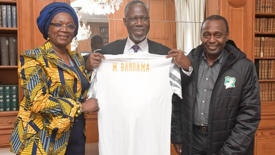La Présidente du Comité de Normalisation de la Fédération ivoirienne de football (CN-FIF), Mme Mariam DAO GABALA, a rendu une visite de courtoisie à Son Excellence Monsieur Maurice Kouakou BANDAMA, Ambassadeur de la Côte d’Ivoire en France. C’était dans l’après-midi du mercredi 23 Mars 2022, à la représentation diplomatique ivoirienne de Paris. Cette visite s’inscrit dans le cadre de la rencontre amicale internationale qui va opposer les Eléphants aux Bleus, le vendredi 25 mars 2022 à Marseille. L’ancien Ministre de la Culture a dit apprécié la démarche et reste confiant quant à une victoire ivoirienne en terre française. Un maillot blanc de la sélection ivoirienne, comme celui que les Eléphants vont arborer face à la France, a été offert à l’Ambassadeur au terme de la visite.