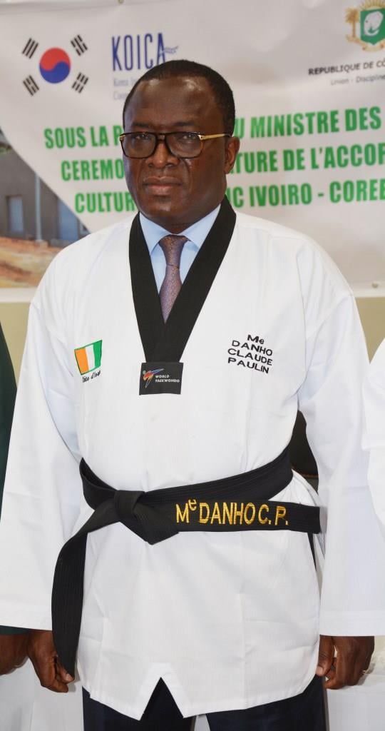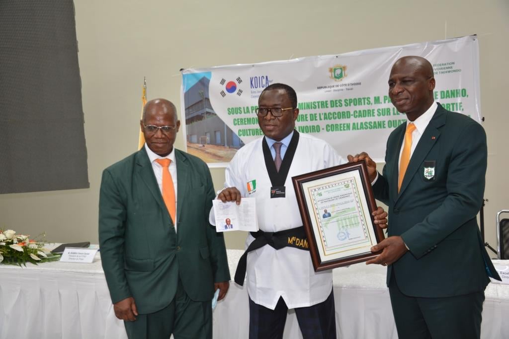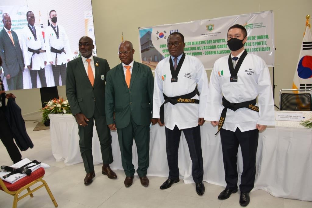 Le Ministre des Sports Paulin Claude Danho signe au nom de l'Etat un accord-cadre tripartite entre la Côte d’Ivoire, la Corée du Sud et la Fédération Ivoirienne de Taekwondo.