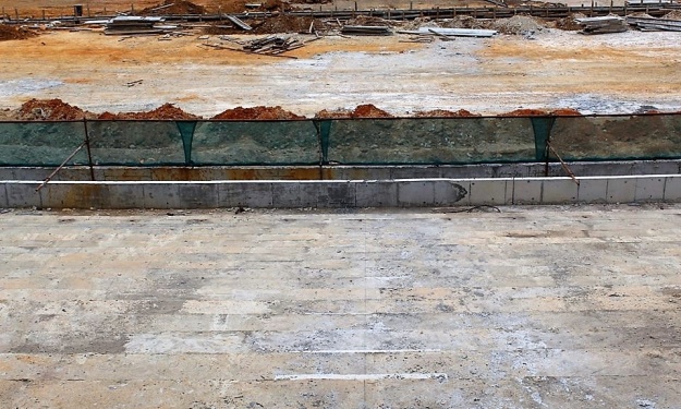 Les escaliers pour accéder aux différents niveaux sont également prêts ainsi que les gradins. Pour l’évacuation des eaux, plusieurs caniveaux ont été réalisés à l’intérieur et à l’extérieur du complexe. La moyenne des profondeurs est de 2.5 m et les largeurs 1.5 m.