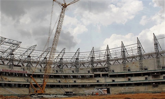 Les travaux de construction de ce magnifique ‘‘nid d’oiseau’’ (sa forme ndlr) de 60.000 places bâti sur un terrain de 20 hectares se poursuivent.