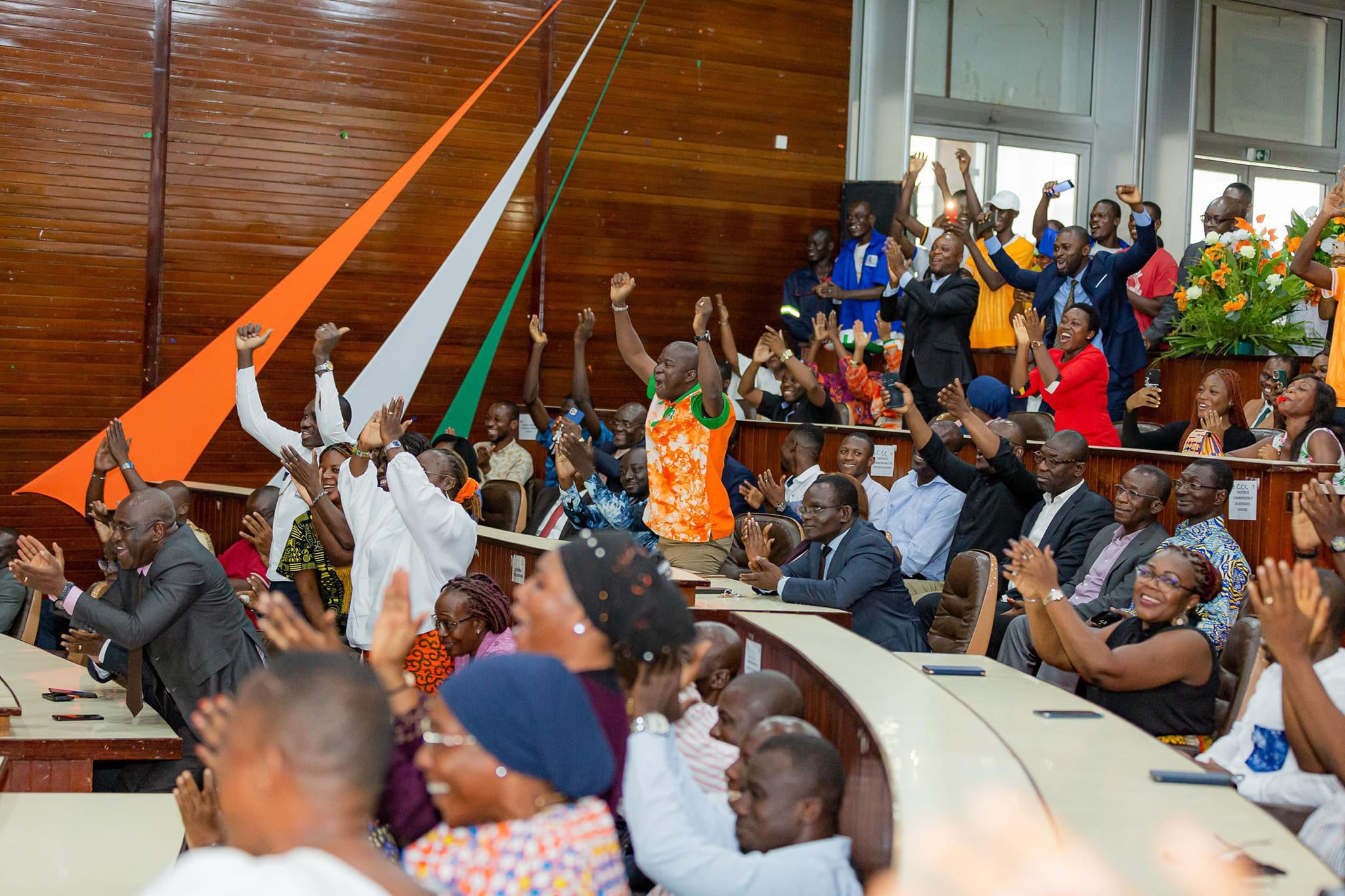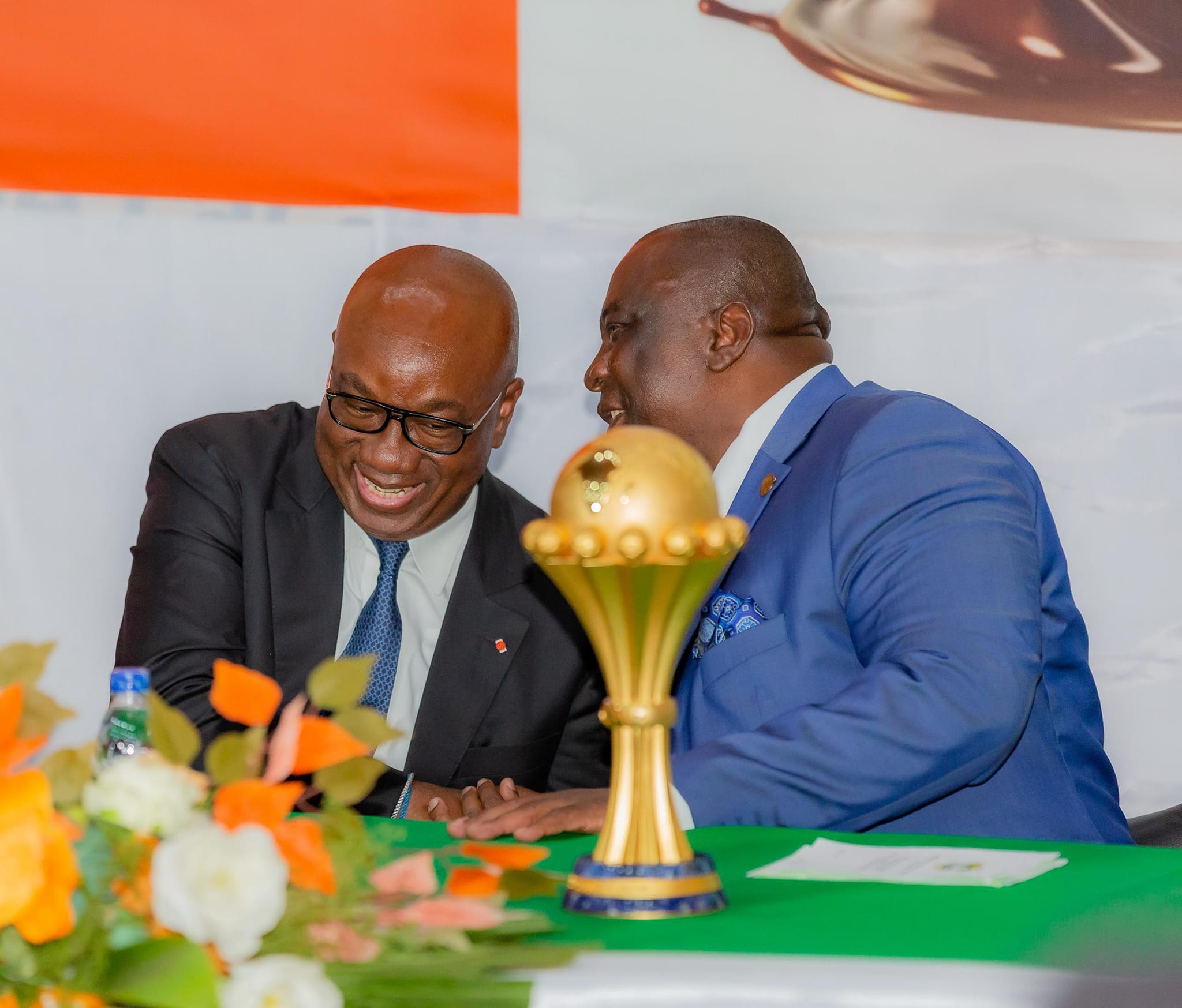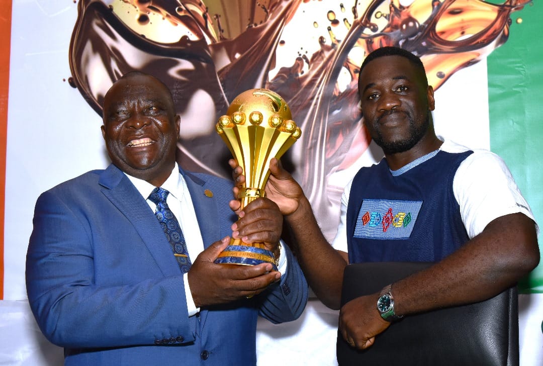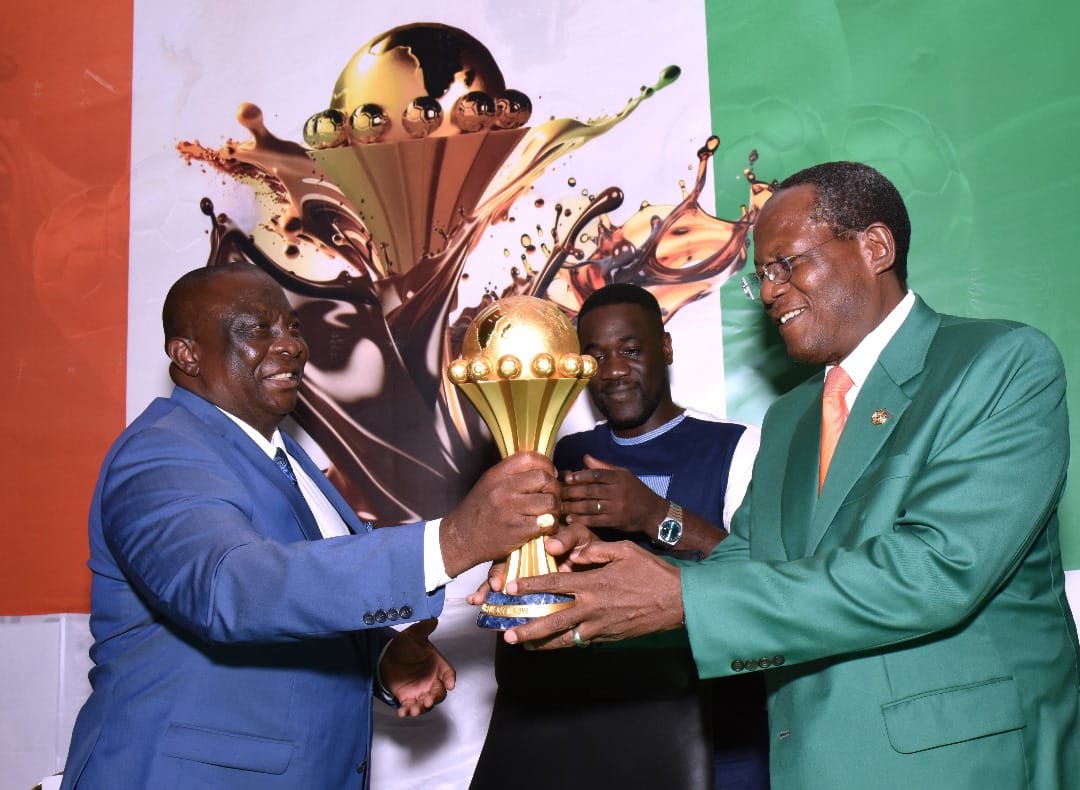 Le Président de la Fédération Ivoirienne de Football, les membres du Comité Exécutif et le sélectionneur national, ont présenté le trophée de la CAN 2023 à la grande famille du Conseil Café Cacao. Emerse FAE a remis symboliquement le trophée au Ministre de tutelle, le Ministre d'Etat, Ministre de l’Agriculture, du Développement Rural et des Productions vivrières, Kobenan Kouassi Adjoumani.