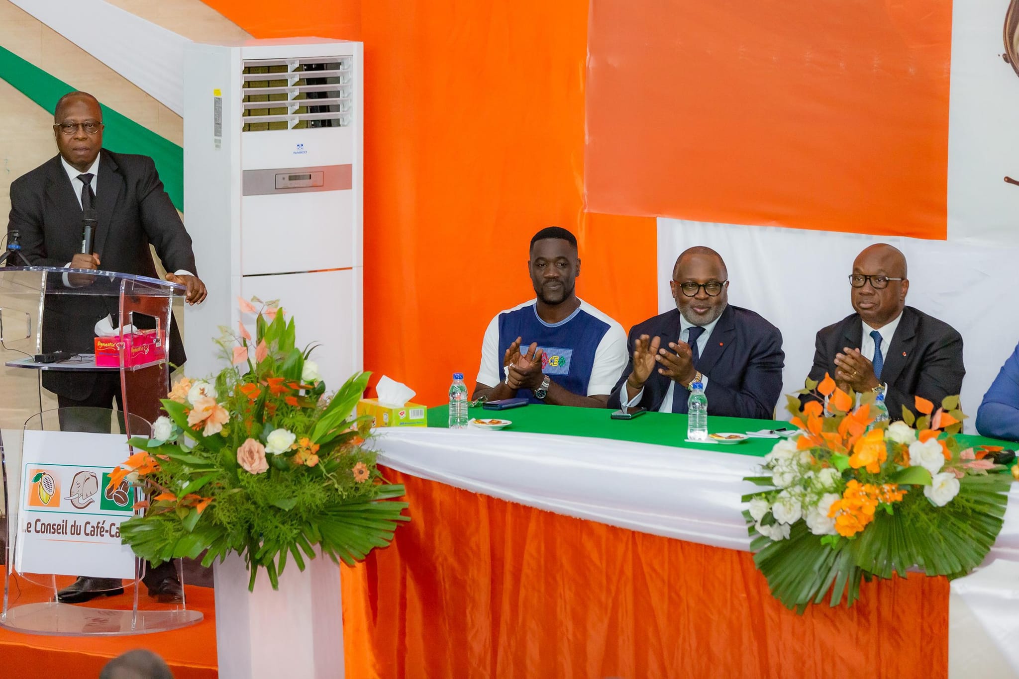 Intervenant pour son mot de bienvenu, le Directeur Général du Conseil Café-Cacao, M. Koné Brahima Yves a fait remarquer que le partenariat FIF-Conseil Café-Cacao a permis à la structure qu’il dirige d’avoir une grande visibilité durant la CAN.