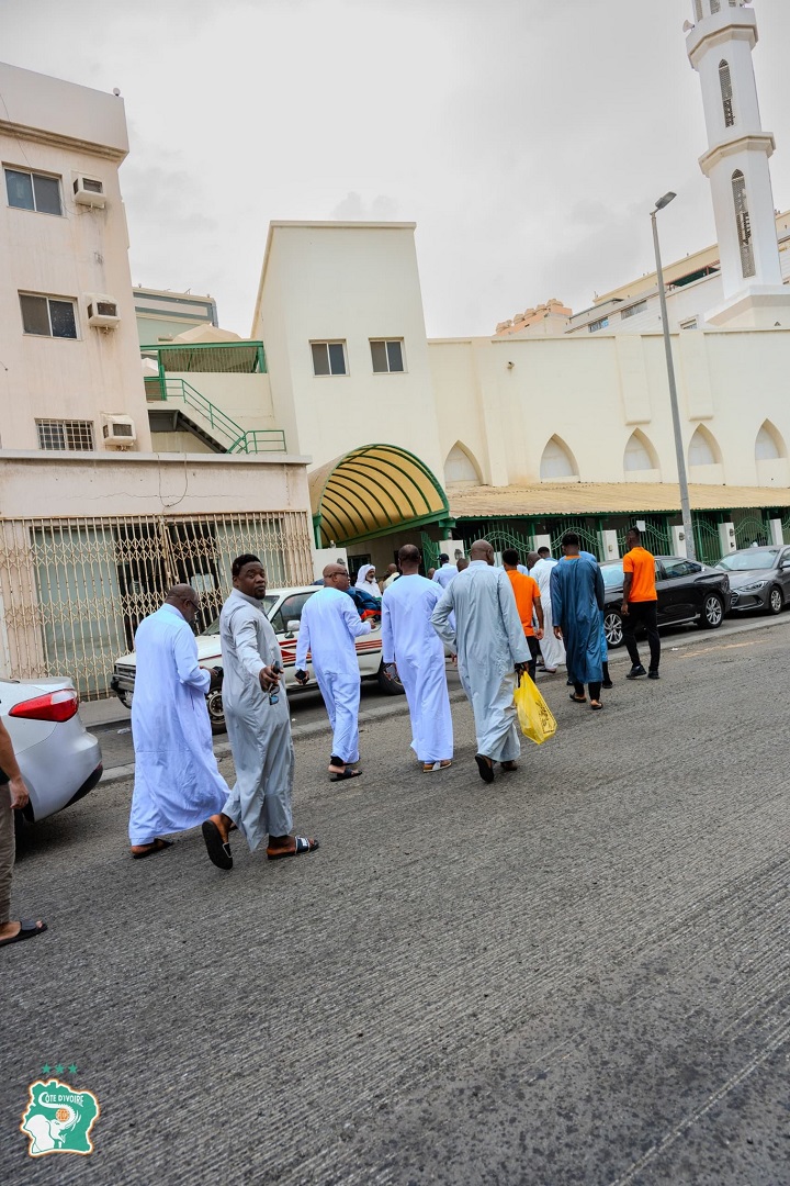 En terre sainte à Djeddah, à quelques heures du match amical international contre l’Arabie saoudite, les membres musulmans de la délégation ivoirienne joueurs, encadrement et dirigeants ont respecté la tradition en se rendant à la mosquée de la ville pour la prière de midi, ce vendredi 14 novembre 2025. Avant la rencontre prévue en soirée (19h30 heure locale), le capitaine Franck Kessié, ses coéquipiers, le staff technique, le Président Yacine Idriss Diallo, les vice-présidents Malick Tohé, Ouattara Sié Abou, Salif Bictogo, les membres du Comité Exécutif Ahmadou Touré, Abdoulaye Diabaté et Issa Diabaté, ont prié pour la Côte d’Ivoire.