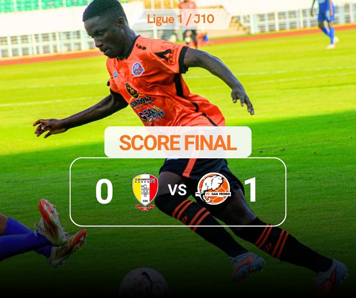 La 10è journée du championnat Ivoirien de première division s’est ouvert ce samedi avec trois rencontres. Au stade Amadou Gon Coulibaly de Korhogo, le FC San Pedro a pris le meilleur sur le COK 1 à 0. Accrochés durant toute la première période, les Pétrussiens ont réussi à trouver l’ouverture à la 69è minute grâce à Doso Issouf. Avec 22 points désormais, les oranges et noirs confortent leur place de leader. Mauvaise opération en revanche pour le Club Omnisports de Korhogo qui perd sa 4è place au classement. Véritable sensation de ce début de saison, l’US Tchologo vient d’enregistrer sa 5è victoire dans cette Ligue 1. Les Bubales ont disposé d’ISCA 1 à 0 au Complexe Sportif de Bingerville. Unique buteur de la rencontre, Ahoutou Benoit (37’) permet à son équipe de s’installer à la seconde place avec 18 points.