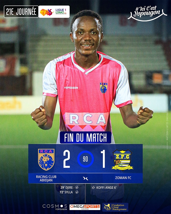 Les Lions d’Abidjan ont encore fait un pas plus vers le titre de Champions. Opposée à Zoman FC, la formation du Racing s’est imposée 2 buts à 1 après avoir été menée au score. Le club de Yopougon est désormais à 43 points soit dix longueurs de plus que son adversaire du jour qui pointe au 4è rang et surtout perd sa 3è place au classement au profit de la SOA. En effet, les Militaires ont pris le meilleur sur le stade d’Abidjan 2 buts à 1 grâce à un doublé de Gbane Mohamed. Avec cette défaite, les Yéyés restent en 6è position avec 31 points.