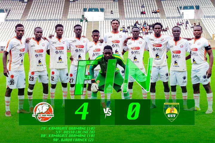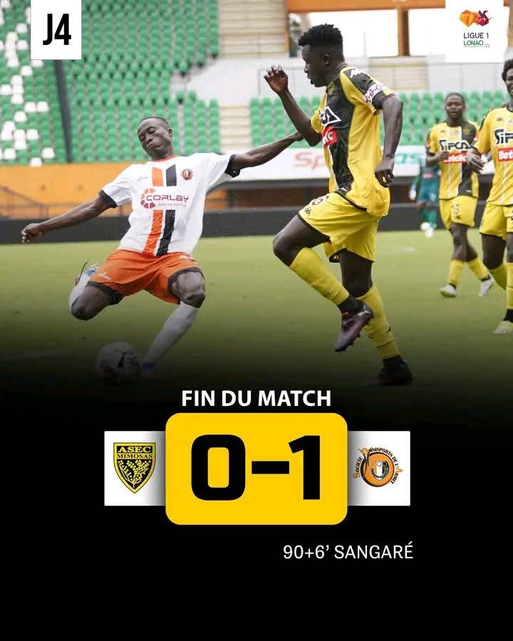 Relégués à la seconde place après la victoire du Stella contre SOL FC, les Mimos se devaient de réagir face à la SOA cet après-midi au Félicia. Malheureusement, l’ASEC va s’incliner 1 à 0 sur un but assassin de Sangaré Souleymane dans les derniers instants (90+6’). Une première défaite cette saison pour les jaunes et noirs qui sont à une longueur des Militaires au classement. Au stade Laurent Pokou de San Pedro, les Pétrussiens ont écrasé l’US Tchologo 4 buts à 0. Kamagaté Dramane (29’, 88’), Doso Laciné (53’) et Djava Franck (90’) ont été les buteurs de la rencontre. Ce succès permet au FC San Pedro de revenir à hauteur de l’ASEC avec 9 points.