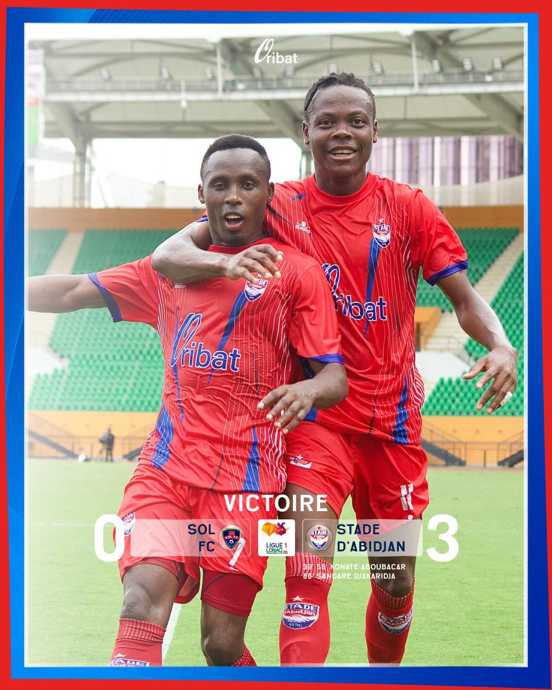 A noter, l’écrasante victoire du Stade d’Abidjan sur SOL FC 3 à 0. Konaté Aboubacar (39’, 58’) et Sangaré Djakaridja ont été les deux buteurs de la rencontre. Les Yéyés renouent avec la victoire et se place au 11è rang avec 7 points au compteur.