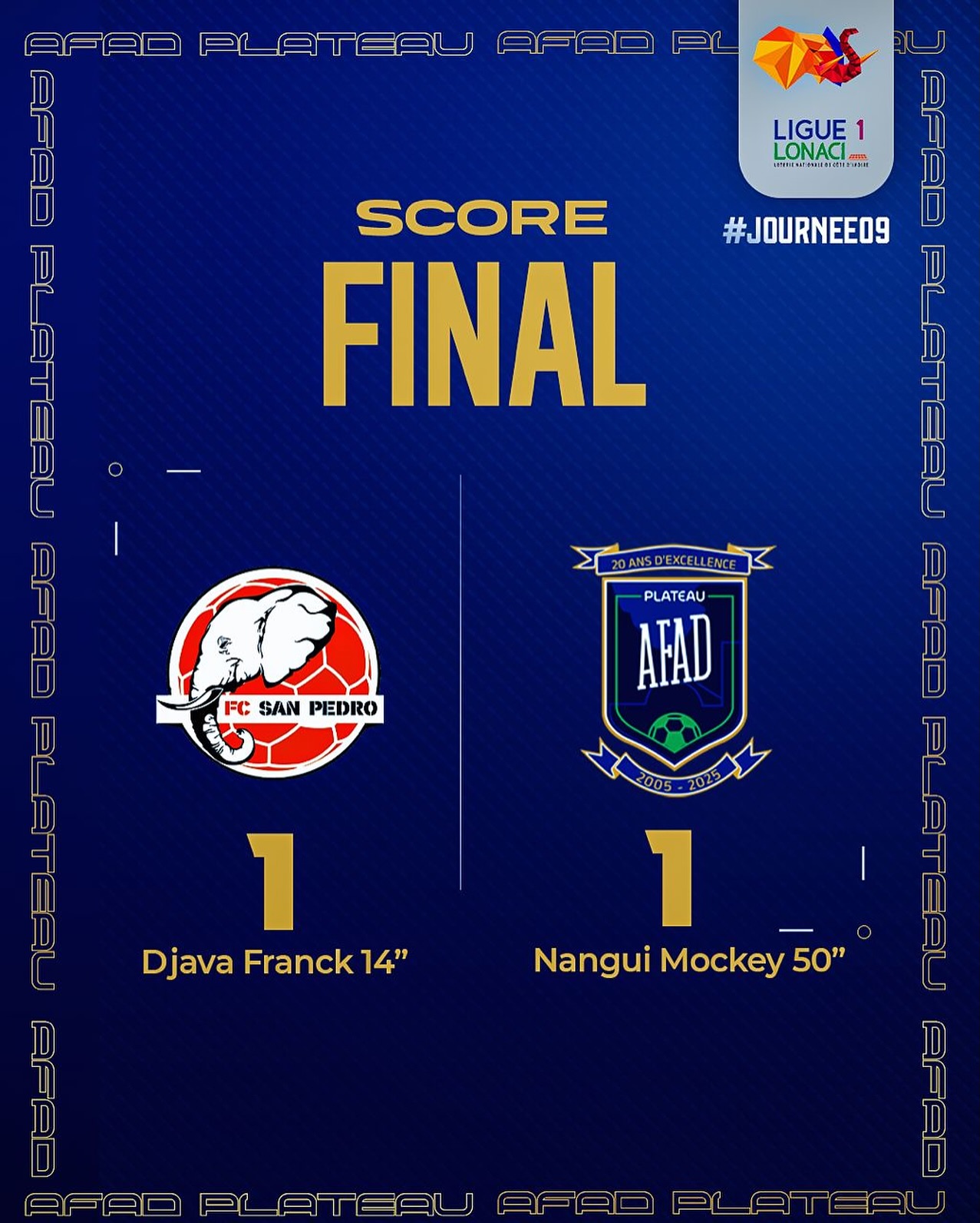 Choc de cette 9è journée, l’opposition entre les Jaunes et Noirs et les Magnans s’est achevée sur un score nul de 1 but partout. Guessou (21’) a ouvert la marque pour le Stella Club d’Adjamé avant l’égalisation de Bakaré (90’) pour l’ASEC. Avec ce résultat, les hommes de Julien Chevalier sont en tête de classement avec 16 points à égalité avec leur adversaire du jour. Au stade Laurent Pokou, le FC San Pedro et l’AFAD ont également coupé la poire en deux (1-1). A la 14è minute, les Pétrussiens vont ouvrir la marque grâce à une réalisation de Djava Franck. En seconde période, Nangui Mockey (50’) a remis les deux clubs à égalité. Les Oranges et noirs comptent 16 points tout comme l’ASEC et le Stella. Les Afadistes pointent au 8è rang avec 10 points et un match en retard.