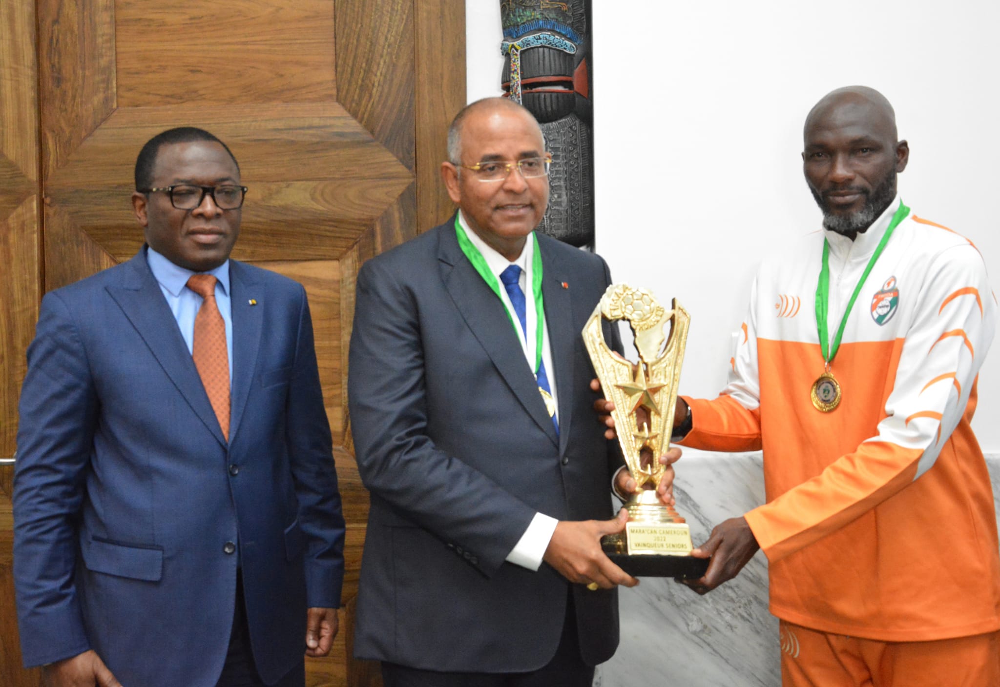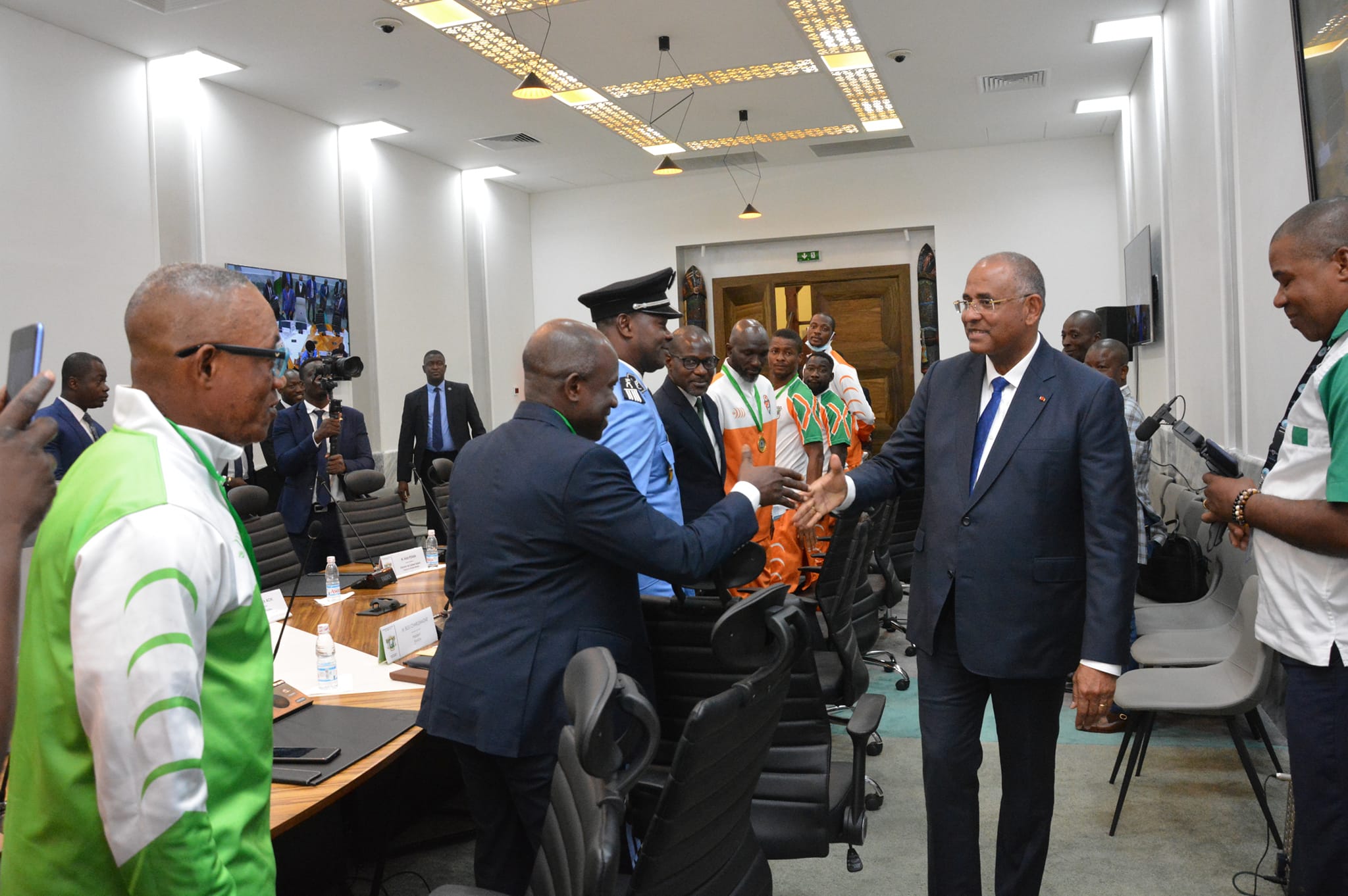 Les Eléphants du maracana, champions de la 9ème édition de la Coupe d’Afrique de maracana ‘‘Cameroun 2022’’ ont été reçus en audience ce vendredi 7 octobre 2022, par le chef du Gouvernement le Ministre Patrick Achi, en présence du Ministre des Sports Paulin Claude DANHO et du commissaire Bleu Charlemagne président de la Fédération Ivoirienne de Maracana (FIMADA), par ailleurs président de la Fédération Internationale de Maracana Association(FIMAA).