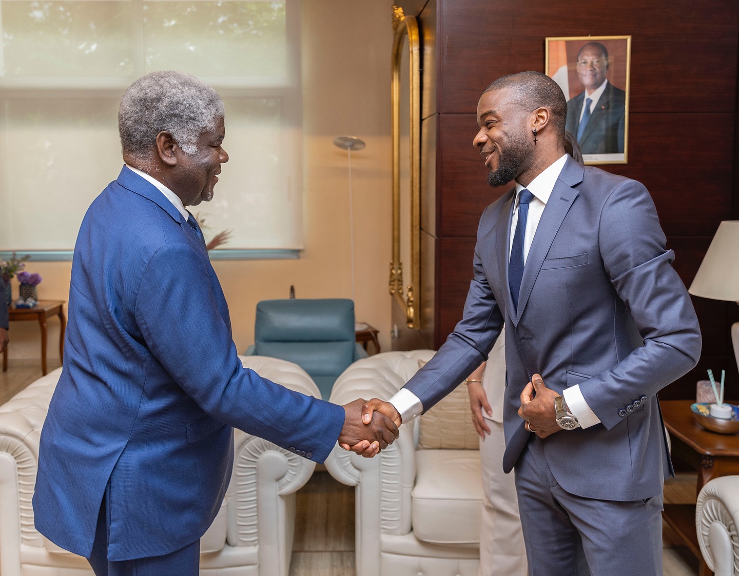 Malgré son absence de la sélection depuis un bon moment, l’attaquant de West Ham ne manque l’occasion de se rendre en Côte d’Ivoire. En vacances présentement, Maxwel Cornet a été reçu en audience par le Premier Ministre Robert Beugré Mambé. L’ancien sociétaire de l’Olympique Lyonnais et de Burnley s’est dit heureux et honoré d’avoir pu échanger avec le Chef du Gouvernement Ivoirien.