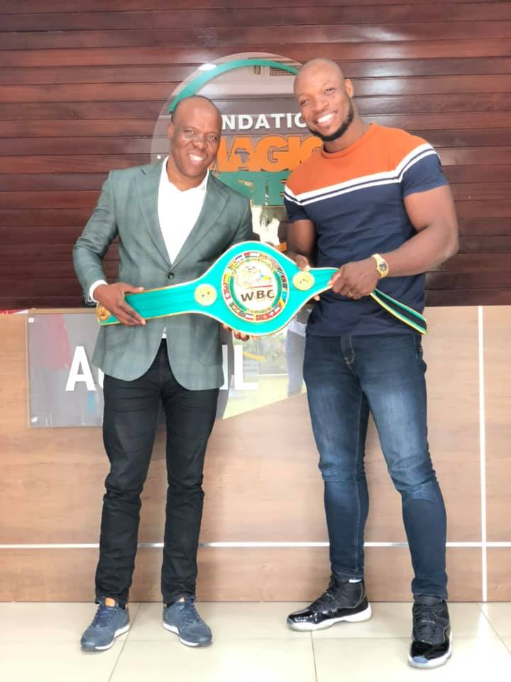 Après le Ministre des Sports le mardi dernier, Yves Roland Oly dit Oly ‘‘La Machine’’ s’est rendu ce jeudi 4 mars dans les locaux de la fondation Magic System où il a été reçu par le 1er responsable de la structure, A’Salfo. Le Champion d’Afrique WBC Muay Thai est allé présenter sa nouvelle ceinture glanée le weekend dernier lors de la soirée de la Ligue 225 Fight Show face au Camerounais Fofé Tchioffo Pierre Éric dit Billy Black.
