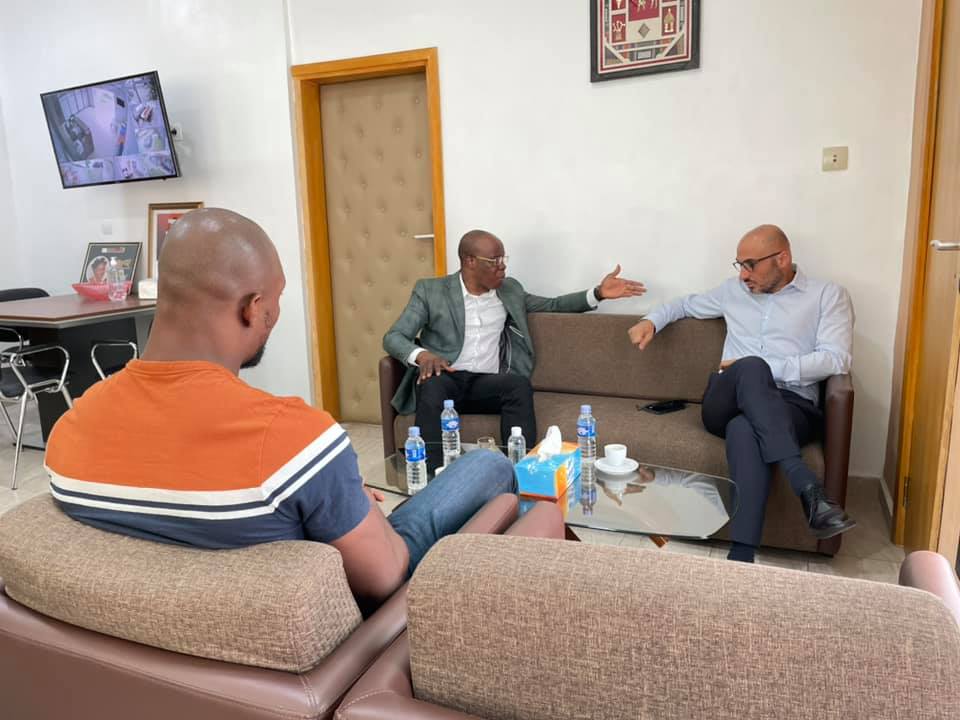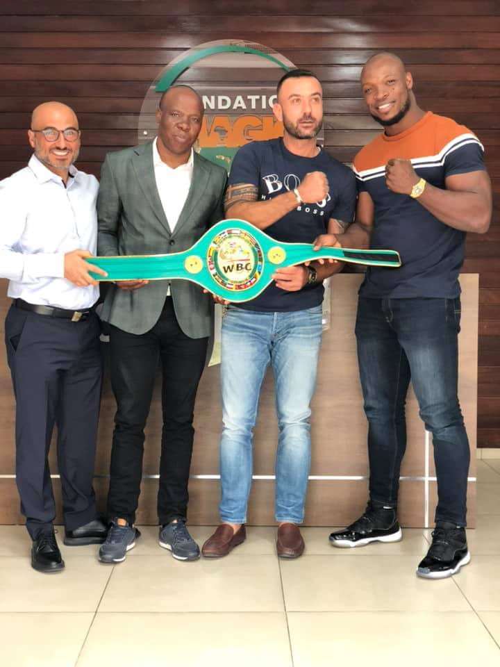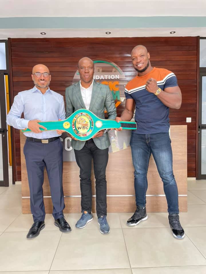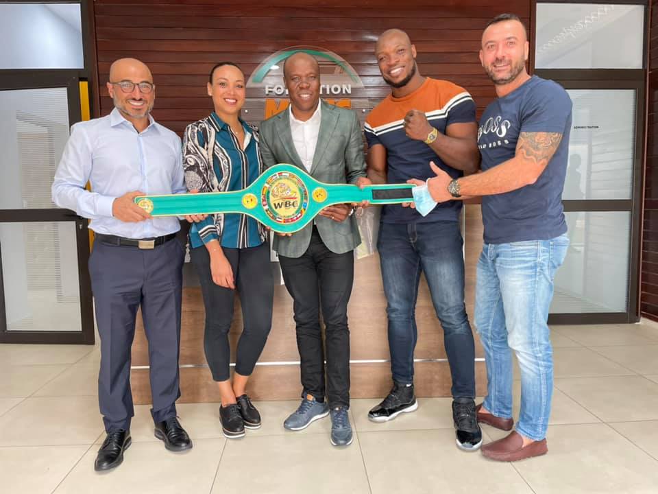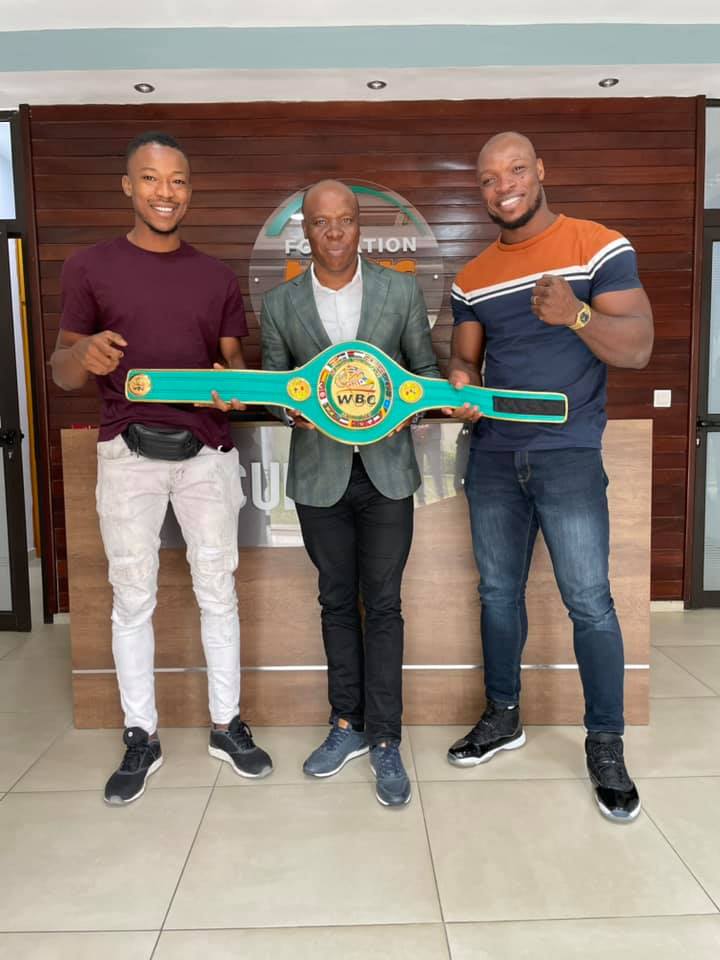 « Mon Cher ami NASCO (PDG de la marque qui porte son nom) est passé dans nos locaux en compagnie du nouveau champion d’Afrique WBC Muay Thai, Oly la machine. Ce fut l’occasion pour lui de me présenter son nouveau titre de champion remporté le weekend dernier. Il mérite nos soutiens et nos encouragements. »