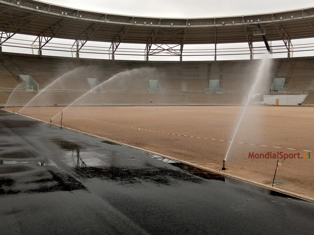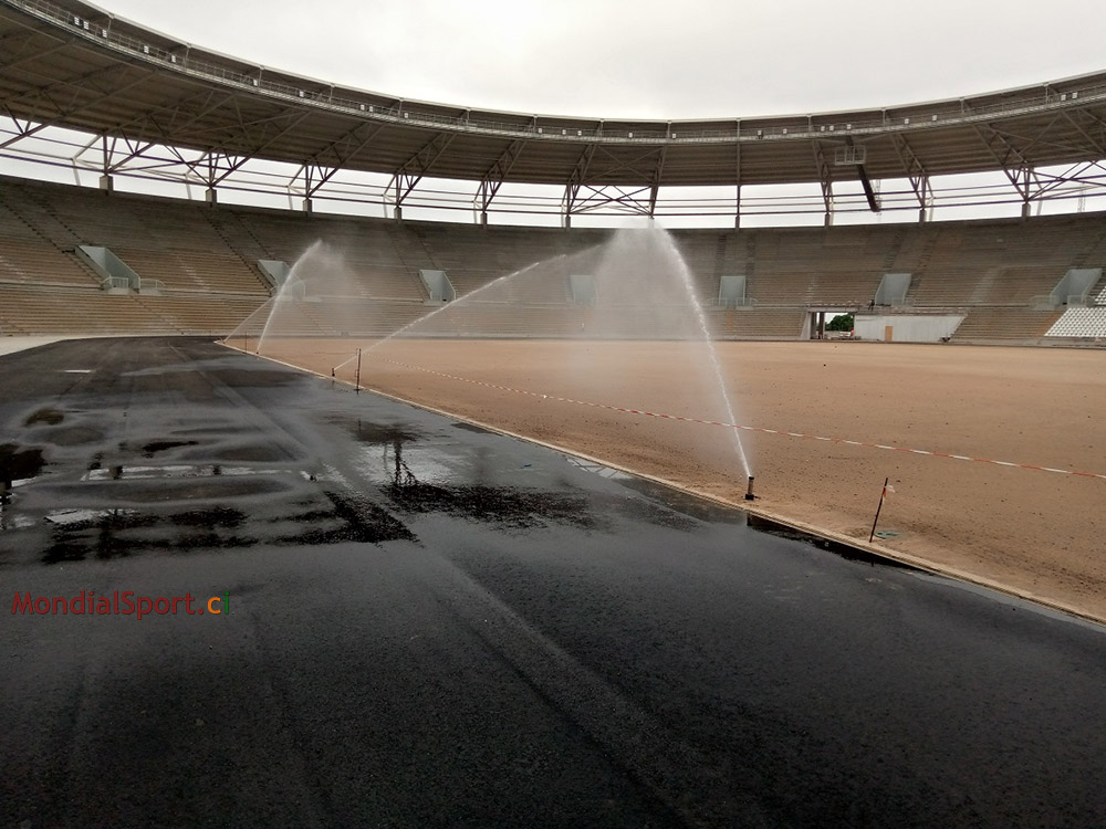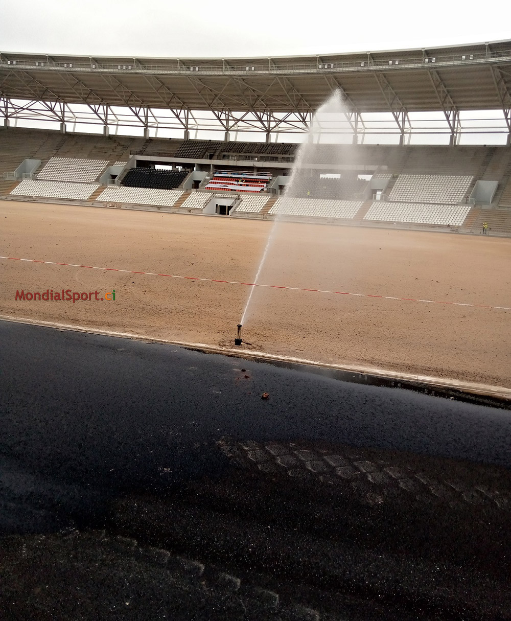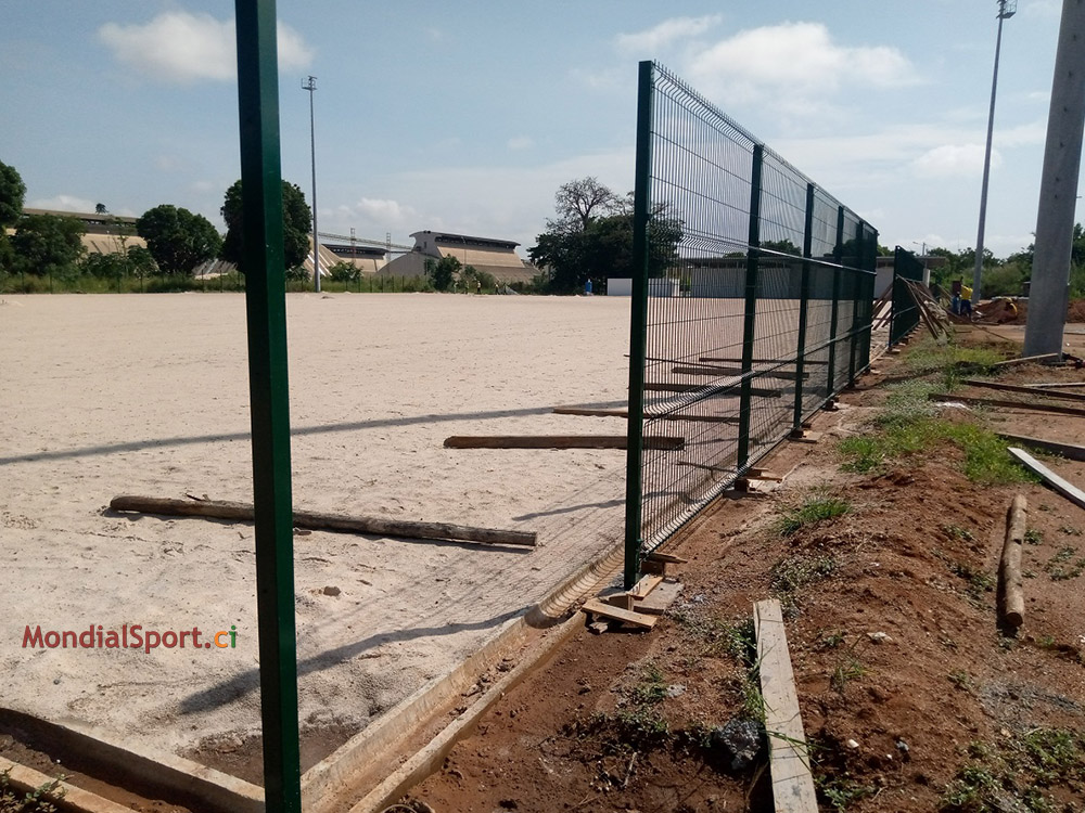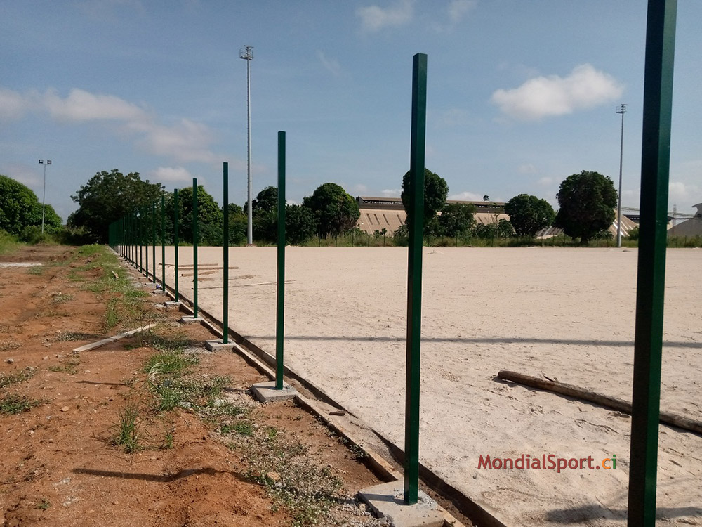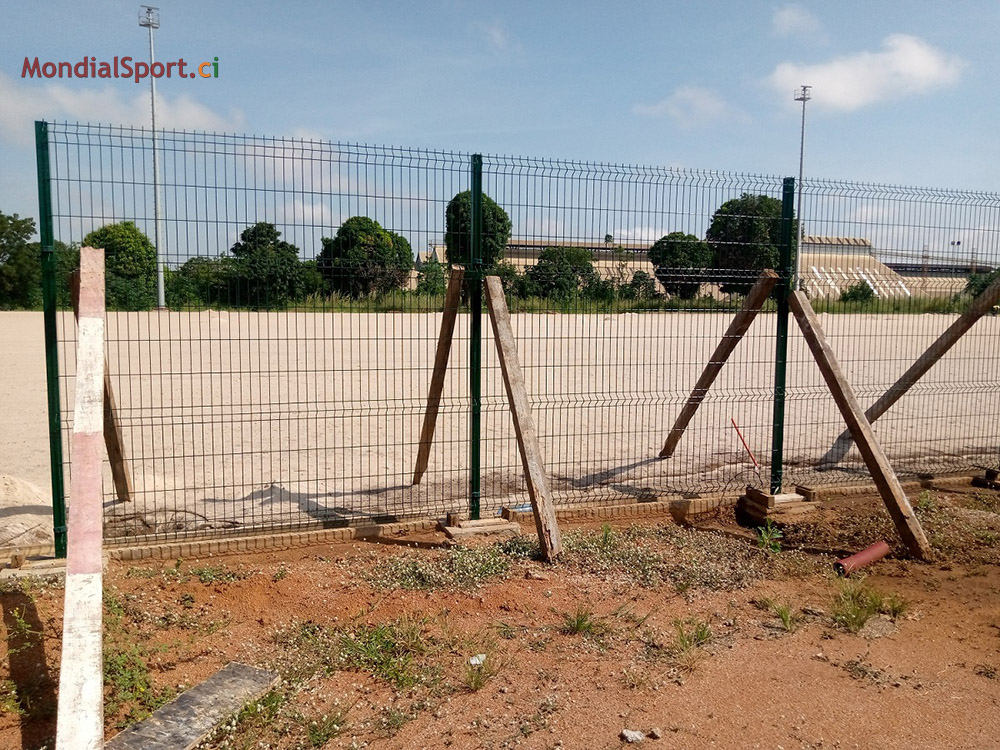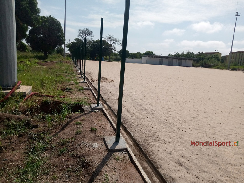 Prochaine étape le nivellement du sol et la pose du gazon ... Au niveau des autres commodités, le lycée technique de Bouaké, l’un des 4 terrains d’entrainement pour la CAN, a désormais sa grille de sécurité. Pour rappel, la pose des sièges grand public, presse et VIP se poursuit, la capacité du stade a été portée de 25 000 à 40 000 places.