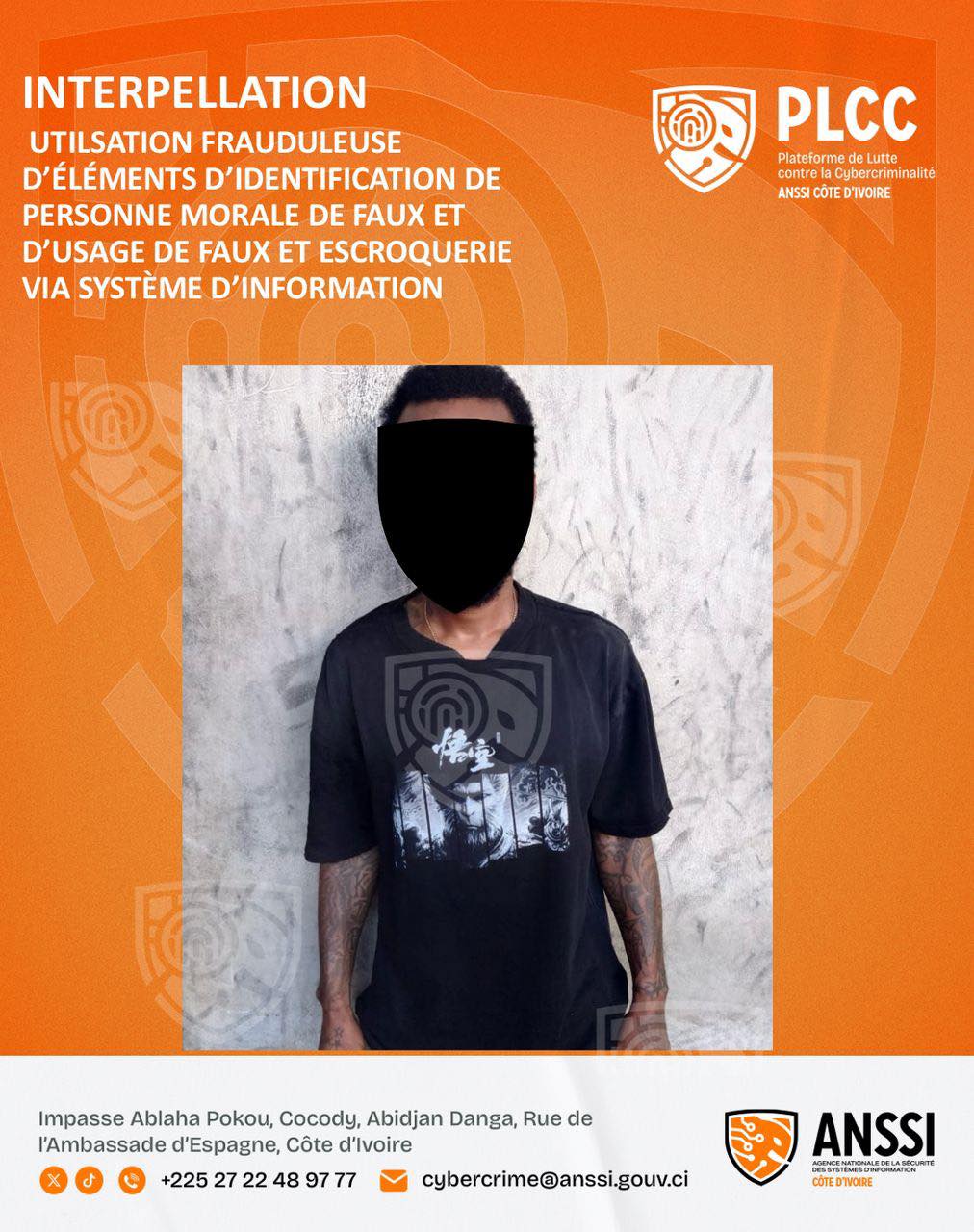 Des individus ont usurpé l’identité de la Fédération Ivoirienne de Football (FIF) afin de tromper une entreprise étrangère et obtenir frauduleusement des équipements sportifs. La société D. LTD, spécialisée dans la fabrication d’équipements sportifs, a été contactée en ligne pour un prétendu partenariat de quatre ans, incluant la visibilité de sa marque en Côte d’Ivoire. Convaincue de la légitimité de l’offre, elle a livré plusieurs lots d’équipements à un individu se présentant comme représentant de la FIF. Après avoir constaté l’inexistence de tout partenariat, l’entreprise a alerté la FIF. L’affaire a été confiée à la Plateforme de Lutte contre la Cybercriminalité (PLCC) de l’ANSSI. Les investigations ont permis d’identifier et d’interpeller K.J.P., principal auteur, qui a reconnu les faits. Il devra répondre pour infractions d’utilisation frauduleuse d’éléments d’identification de personne morale, de faux et usage de faux, ainsi que d’escroquerie via un système d’information, prévues par la loi n°2013-451 du 19 juin 2013 relative à la lutte contre la cybercriminalité.